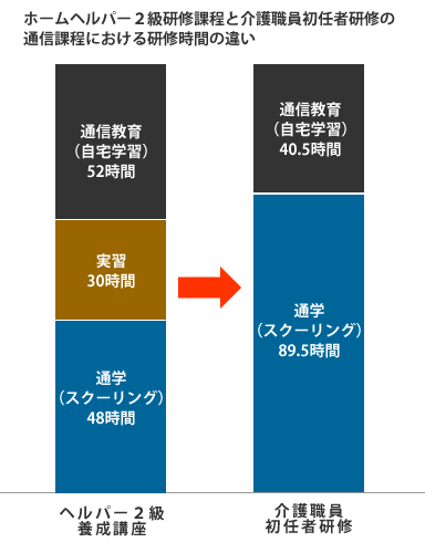 実技などの演習の時間が増えることで、これまで通信教育で学習するホームヘルパー2級課程では、