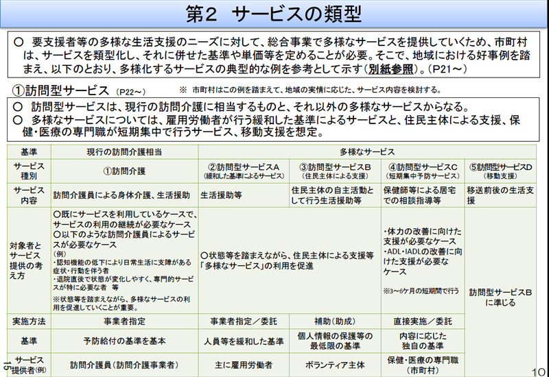 予防訪問介護と新しい4つの類型